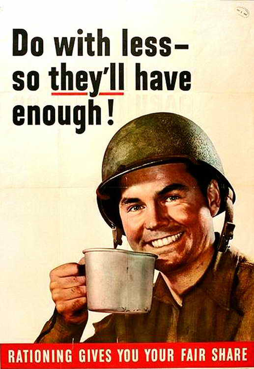 원본 포스터는 2차 세계대전 당시 미국이 쓰던 전쟁 선전용 포스터다. 원래는 '우리는 조금씩 절약합시다 - 그들이 충분히 가질 수 있게!' '전시배급은 당신에게 정당한 몫을 보장합니다' 인데, I want YOU for US Army 수준은 아니라도, 꽤 유명했던 포스터다.