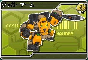 본체에 어깨포가 내장되어 있는데, 탄수만 많은 핸드건이다(...). 기술 수치도 낮으므로 주력 무장이라기 보단 이게 있으니 양손엔 거침없이 근접 병장을 달아도 되겠다 생각하는 것이 바람직하다. 코스트가 낮은 편이고 레벨 5 이전에 부스트 러닝을 익힐 수 있다. 재밌게도 C21의 재규어 암은 본체에 핸드건이 달려있지 않다. 대신 어썰트재 규어라는 놈이 핸드건을 내장하고 있다. 다만 외형은 재규어 암과는 좀 많이 다르다.