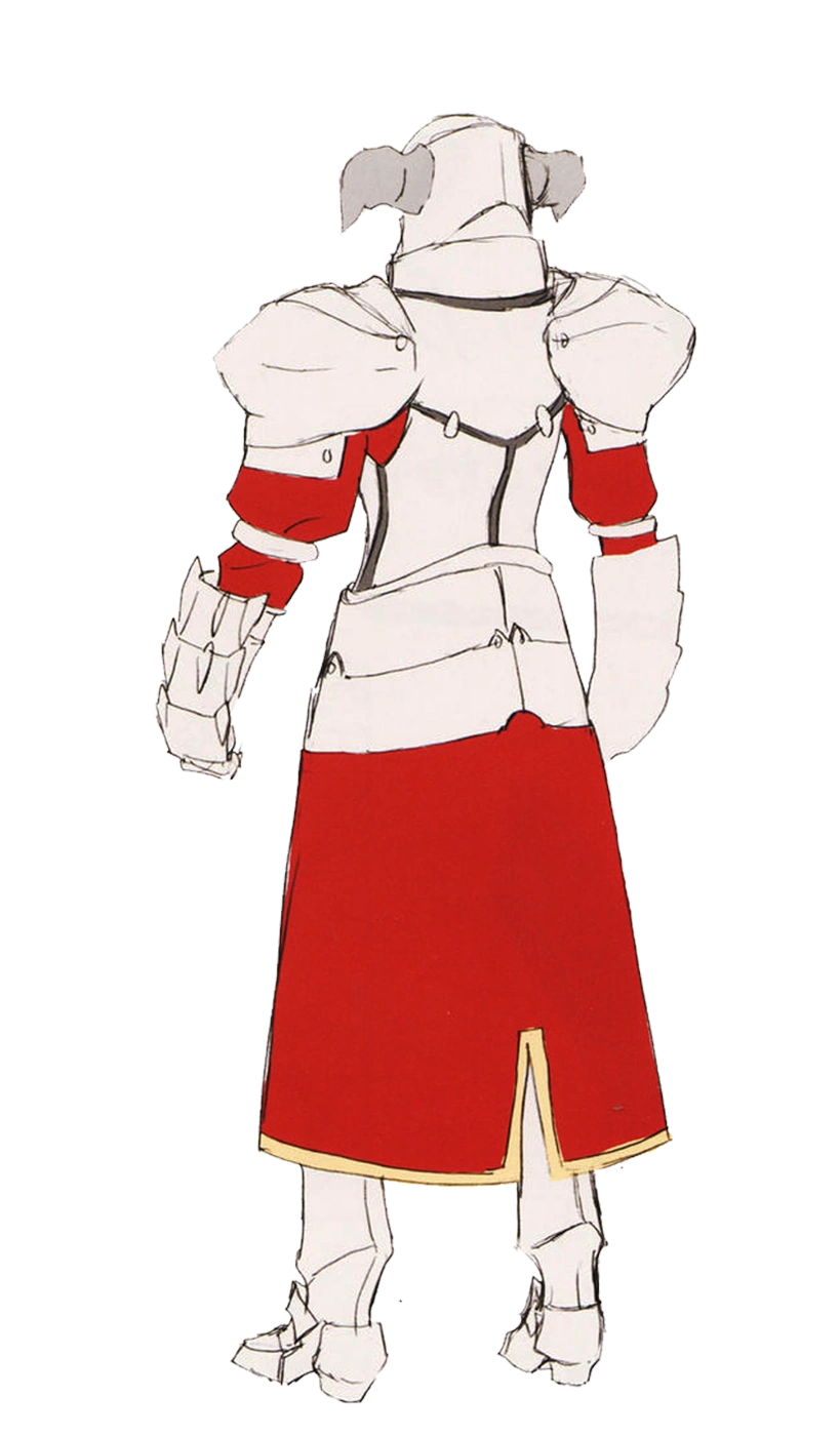 갑옷과 투구로 꽁꽁 무장해서 그렇지 신체적으로는 20살도 채 안 된 어린 소녀. 몸집도 작고 외모도 아주 예쁘다. 하지만 여자로 취급받는 걸 아주 아주 싫어하고, 남자 말투를 쓰는 데다가 평소 행실도 거칠고 조잡하다. 1인칭도 '오레'. 근데 아포크리파 마테리얼을 보면 남자 취급을 받는 것도 기분 나빠한다. 젠더퀴어..? 아름답고 늠름한 외모를 지녔지만 매우 흉폭한 분위기를 풍긴다. 그래서 노출도 높은 옷차림으로 치안이 나쁜 길거리를 돌아다녀도 불량배든 소매치기든 아무도 건드리지 않는다. 소설의 표현을 빌리자면 소녀의 모습을 한 그리즐리.