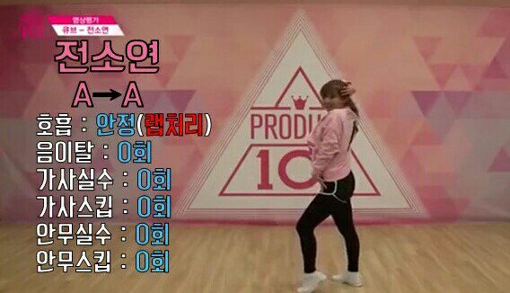 터치였고 결과 발표 후 전소연이 갑작스런 통증을 호소하자 강예빈이 식은땀을 닦아주었다. - ↑ 포지션 경연이 끝나고 건강 상의 이유로 순위발표식에 참여하지 못했다.