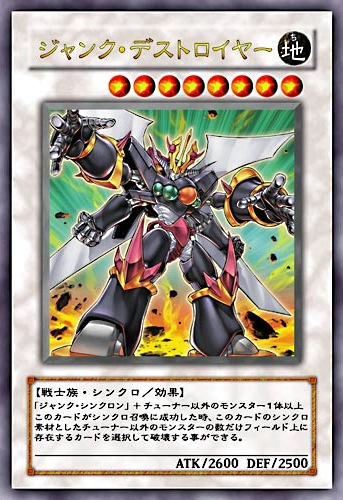 | 하나된 투지가 노도의 마신을 부른다! 빛을 비추는 길이 되어라! 싱크로 소환! 분쇄하라 정크 디스트로이어!(集いし闘志が怒号の魔神を呼び覚ます。光さす道となれ!シンクロ召喚!粉砕せよ、ジャンク・デストロイヤー!) | ||||