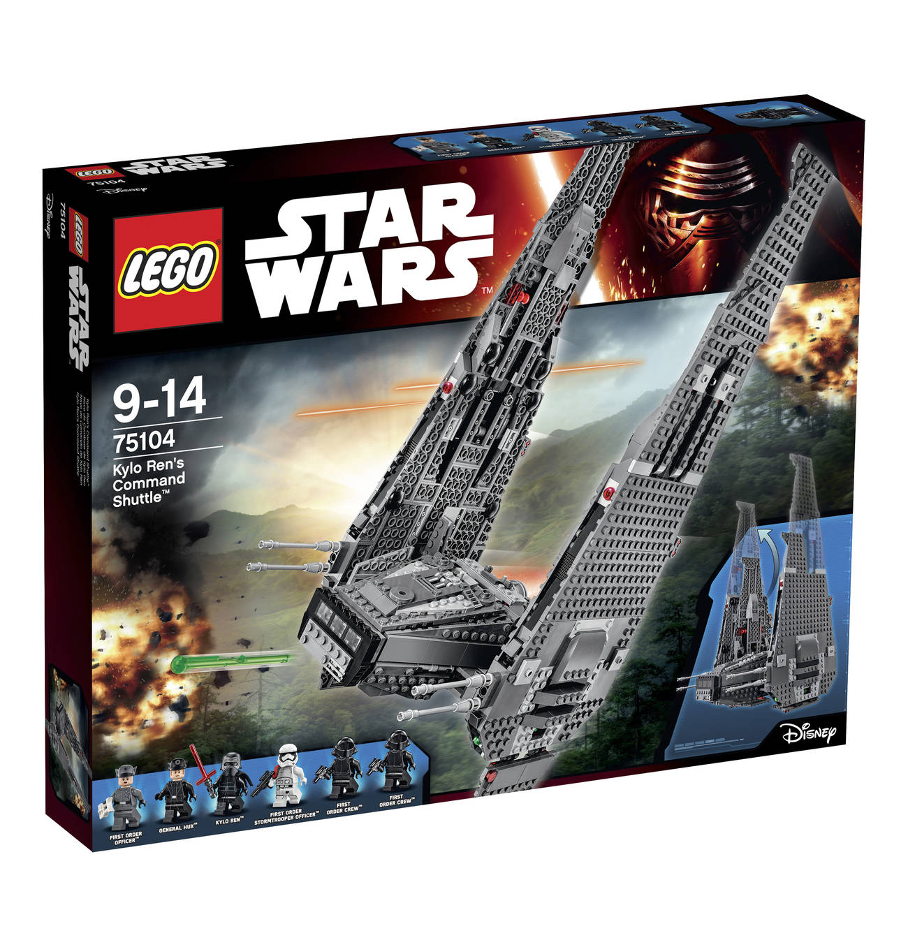 레고는 75104번으로 2015년 9월 미리 발매되었으며, 덩치가 상당히 큰 편. 카일로 렌, 헉스 장군, 스톰트루퍼, 승무원 3인의 미니피규어도 들어있다. 다만 영화에서처럼 V자로 펼쳐지는 기능은 없다. 물론 몇 유저는 펼쳐지게 마개조 한다. 기체 크기상 밑날개가 본체보다 길어 경첩으로 접는 기능이 있는데 얘를 떠오르게 한다. 사족으로 스티커를 전혀 사용 안 한제품이다.