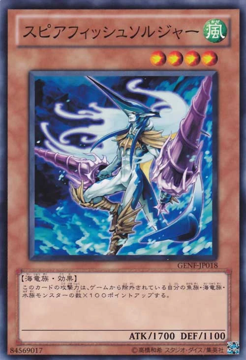 제너레이션 포스에서 등장. 제너레이션 피시의 핵심 전개요원이라 할 수 있는 카드. 위의 카드들로 쉽게 특수 소환이 가능하며, 이외에도 망각의 해저신전으로도 쉽게 조건을 만족할 수 있다.