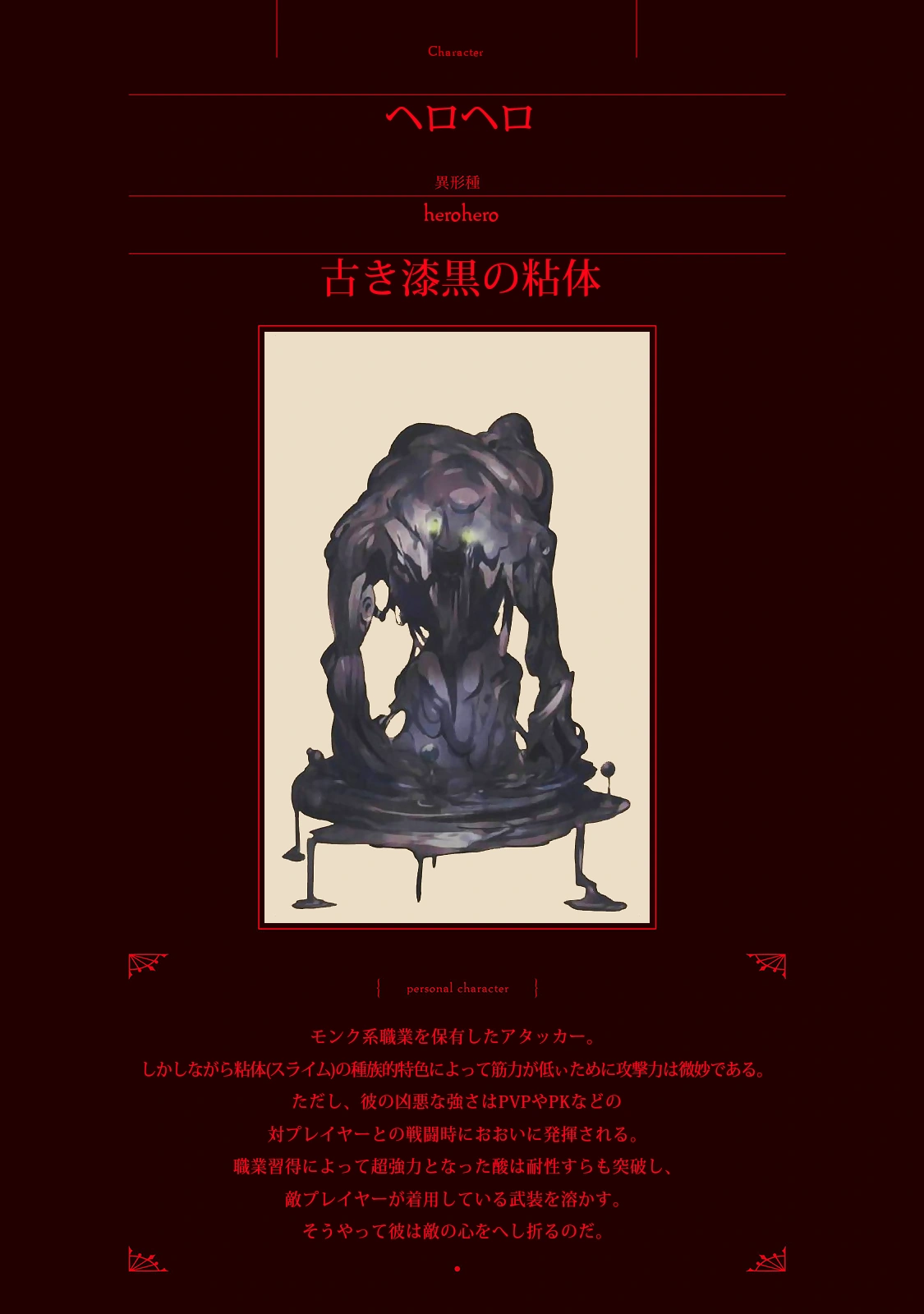 - ↑ 헤롱헤롱이 피로를 이기지 못하고 로그아웃 하지만 않았어도 고생하는 프로그래머 생활 청산 및 모몬가와 함께 이세계의 수호자로의 전직 등으로 인생이 활짝 피었겠지만 어디까지나 그것은 작가가 한 명이라도 같이 왔다면 모몬가가 세계를 수호하는 쪽으로 나섰을 것이라는 언급에 대한 가정이다. 아인즈와 가장 마지막 까지 있었던 길드원이 헤롱헤롱이니 말이다.