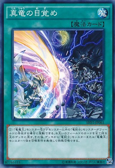 여담이지만 일반적으로 "각성" 이라는 단어에 쓰인 한자는 覺醒이지만, 이 카드에서 쓰인 한자는 目覚め로 다른 표현을 쓰고 있다. 그러나 한국에서 전자는 "각성"으로 번역하지만, 후자는 드래곤 자각의 선율이라는 선례가 있어 이 카드가 "진룡의 자각'으로 발매되었다.