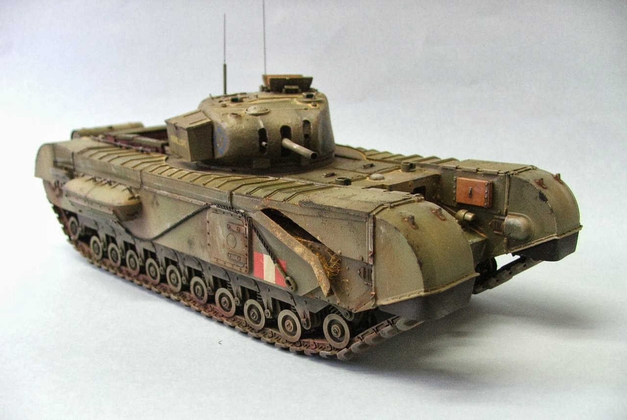 미니어처 워게임인 Flames of war에서는 영국 보병중대에 자주 붙어서 나오는데 처칠 Mk.7같은 경우에는 대전차 능력은 미약하지만 킹타이거 후기형에 맞먹는 전면장갑을 자랑해서 킹타나 야티급 주포로도 운이 좋으면 겨우 격파가 가능할 수준이다. 6파운더를 장착한 초중기 형식은 전면은 좀 더 낮지만 중간급 전차를 상대로 강력하다. 화염방사기나 AVRE 형식은 떡장 때문에 쉽게 제거하기 어려운데 보병라인을 밀어버린다.