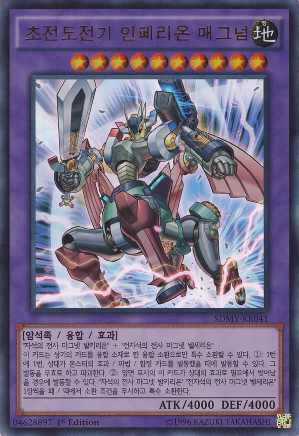 스트럭쳐 덱 - 유희편에 수록된 자석의 전사 둘이 그레이트 합체한 궁극의 마그넷 워리어. 모습을 보면 페가서스 세이버, 켄타우로스처럼 생겼다. 이름은 미사와 다이치가 사용한 마그넷 시리즈의 에이스인 초전도전사 리니어 매그넘 ±과 비슷한 작명법을 사용하고 있다. 나름 의식한 듯. 이 와중에 한국어판은 Imperion을 인페리온으로 표기했다.