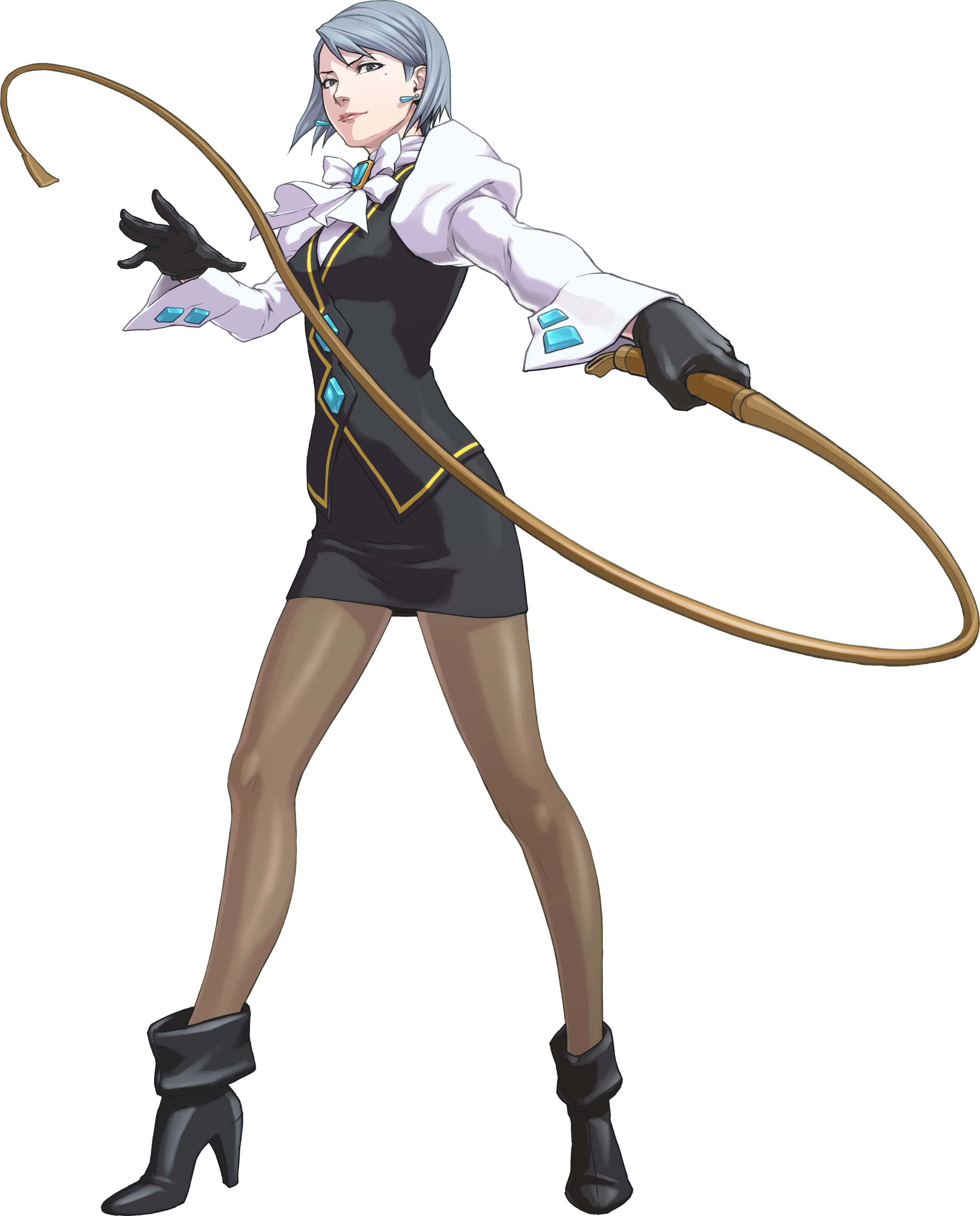 또한 채찍질의 귀재. 나루호도에게는 기본이고 경찰과 용의자, 증인에게도 휘둘러대며 심지어 재판장에게도 채찍질을 서슴치 않는다. 가까운 사이인 미츠루기에게까지 휘두른다. 재판장의 동생이 채찍을 압수하려고 경관을 불렀으나 미츠루기가 이의는 없다고 하는 바람에 그냥 넘어가게 되었다.그리고 재판 내내 채찍을 맞았다 게임상에서도 멋대로 채찍질을 해서는 안 되는 듯. 역시 재판장의 마음이 넓었다는 것을 알 수 있다. 주변에서 말려도 '진범 검거할 때 이거 덕을 많이 봤어' 라며 절대 그만둘 생각을 안 한다. 이 채찍에 맞지 않은 남자는 정말 손에 꼽을 정도지만[11], 로우 시류는 채찍을 한 손으로 잡아내는 간지를 선보였다. 결국 간파당하자마자 얻어맞았지만... 지못미.[12]또한, 도저히 참을 수 없을 만큼 한계에 다다르면 마인드 컨트롤을 하는 건지 아무 말 없이 채찍만 휘둘러 주변사람들에게 충격과 공포를 선사하기도 한다. 역전검사 2에서 그녀가 미는 새로운 말버릇은 "채찍의 밥이 되게 해주겠다"이다.