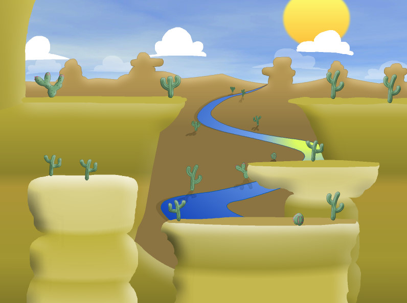 - 와일드 웨스트(Wild West) : 위에서 크고 작은 돌멩이가 떨어진다. 맞으면 납작해지고 지속피해를 입으니 주의하자. 우주 스테이지와 비슷하게 배경에 있는 선인장들이 매번 플레이할때마다 위치가 바뀐다.