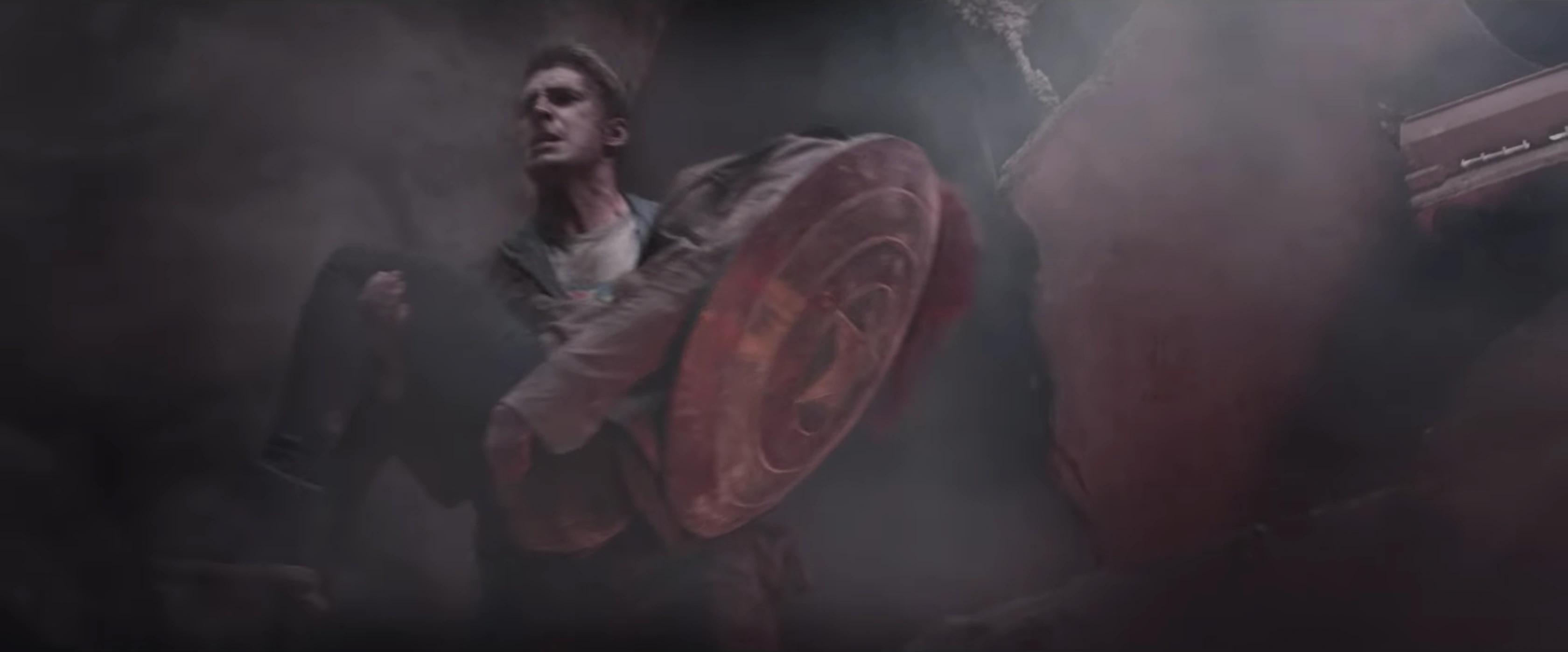 - ↑ 지하로 연결된 통로에 몸을 숨겨 폭발에서 벗어나고, 위에서 떨어지는 건물 잔해는 방패로 위를 막아서 버틴다. 순도 100% 비브라늄 방패와 캡틴의 초월적인 힘을 볼 수 있는 장면.