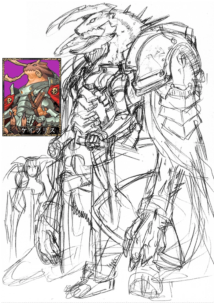 러프스케치에서의 케이브냥과 케이브왕의 모습. 귀축왕 때에 비해 이미지가 어른스럽게 변했다.