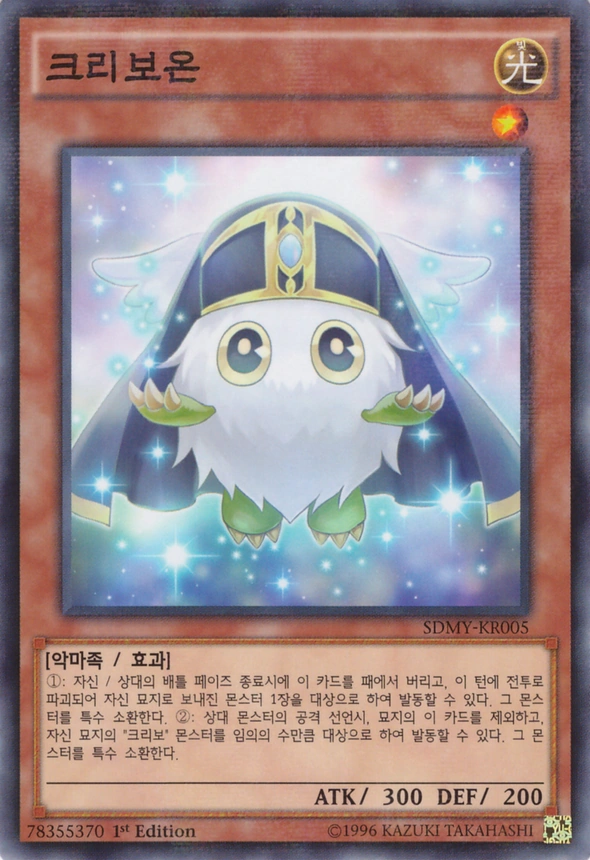 | 자신의 덱에서 "크리보" 또는 "날개 크리보" 1장을, 패에 넣거나 자기 필드 위에 특수 소환한다. | ||||