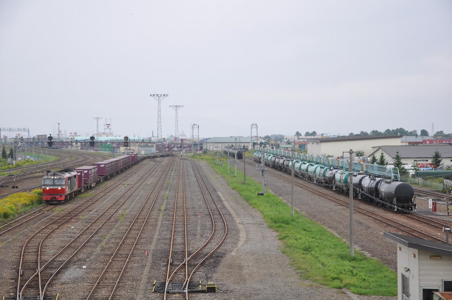 3면 6선의 컨테이너 플랫폼을 갖춘 지상역이다. 그 외에 하역선과 이어지는 사분선(仕分線)[1]이 6선, 본선과 접속하는 착발선이 5선 있으며, 각 기업의 공장으로 이어지는 전용선도 많다. 한 마디로 삿포로 화물터미널역 다음으로 중요한 홋카이도 화물수송의 중심역. 네 다음 콩라인