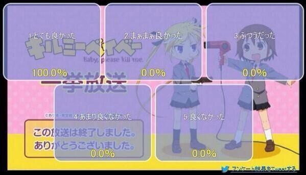 - ↑ 킬 미 베이비가 어떠하냐는 앙케이트에 "굉장히 좋았다" 항목이 100%를 차지하고 있다.