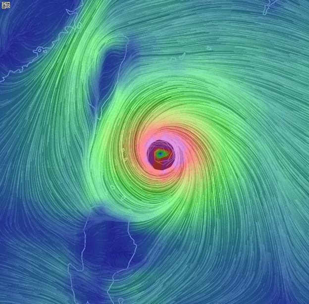 - 므란티 (2016.9) - 중심기압 890hPa, 순간 최대 풍속 73m/s를 자랑하는 슈퍼태풍으로 21세기 들어 발생한 태풍 중 최강의 위력을 자랑한다고 한다. 참고로 빨간색은 풍속 33~50m/s를 보라색은 풍속 51m/s 이상을 나타낸다. 당장 이곳에 들어가 태풍이나 풍속들을 확인하더라도 저렇게 보라색으로 표기할 정도의 위력인 태풍은 정말 희박하다.