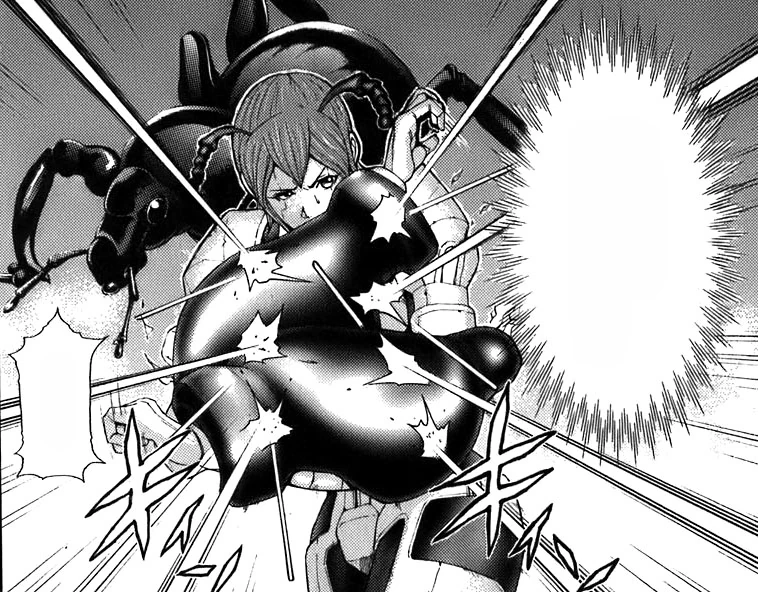 - 이 때의 활약이 가히 압권인데, 폭주하는 아카리를 납치하려는 구두룡 호에게 광역 전기장을 펼쳐 빅엿을 날려버리고, 덤으로 지도자급 테라포머를 포함한 수많은 바퀴벌레들도 아카리의 지원으로 털어버리는 충공깽을 보여줬다. 거기다 레이저포에 머리가 꿰뚫리고도 순식간에 복구되는 초재생능력까지 각성한 것으로 밝혀졌다!