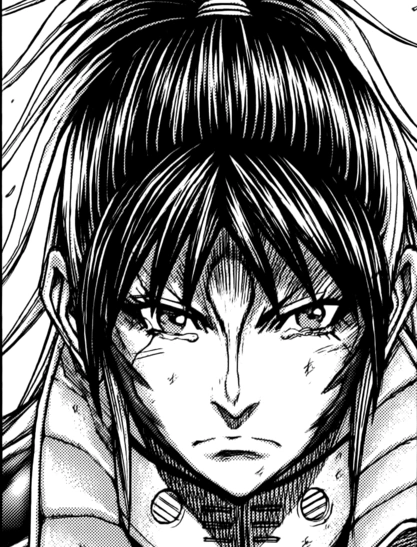 - 리우 조장마저 숙청당한 이상 직접 둘을 갖다바쳐야만 그나마 살 지도 모르는지라 필사적인 상황. 다른 반 대원들을 상대할 땐 인정사정 안 봐주는 것처럼 굴지만 의외로 내심 그들을 '정말 더없이 좋은 녀석들'이라고 여기고 있었다. 그렇지만 가난한 슬럼가 자체를 통째로 갈아엎을 수 있을만한 막대한 포상금으로 '평화'를 손에 넣겠단 마인드로 마음을 독하게 먹고 있을 뿐이다. 갑각류의 강점과 고유 능력 그리고 난리통에 아카리로부터 빼앗은 전용무기 '히자마루'로 아카리의 목을 그어 치명상을 냈고 마지막으로 목을 베려 했지만, 아카리의 칼은 나방으로써의 신호의식이 두절되면 진동을 멈추고 무딘 칼이 된다는 걸 알지 못한 탓에 역관광을 당하고 사마귀의 낫에 몸이 크게 베인 채 차량 밖으로 추락해 리타이어...하긴 했지만 결국 도르지바키와 더불어 살았다는 게 밝혀진다. 지구 귀환을 위한 마지막 난전 와중에 홍과 시이를 비행 스쿠터로 구출했고, 모든 사태가 일단락된 후 해명을 요구하는 카이 장군의 말에 아무도 입을 열지 못할 때 가장 처음으로 이 모든 건 류 장군이 독단적으로 벌인 일이고 우린 어쩔 수 없이 따라야만 했다고 말한다. 이 또한 류가 사전에 다른 4명에게 이 모든 것들은 실제로 당국과는 다른 독자행동[52]을 요구하는 게 맞으니까 일이 잘못된다면 전부 내 탓으로 돌리라고 말해뒀던 것인데, 그럼에도 다들 의협심으로 따랐던 만큼 4반 생존자 모두가 결국 류의 이름을 팔면서도 눈물을 참지 못하는 모습은 나름 짠하다. 카이도 대충 눈치는 챈 듯하지만 상황이 여러가지로 급박한 것도 있고 해서인지 더는 따지지 않고 지구로 데려간다.