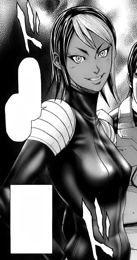 - 남아프리카 공화국 출신의 여성. 특수능력은 좀비 바퀴벌레를 만든다며 한때 인터넷에서 화제가 되기도 했던 '에메랄드 는쟁이벌[12]'. 바퀴벌레의 안으로도 들어갈 수 있어서, 3화에서 인간과 통화를 하는 듯한 바퀴벌레 모습으로 등장해 독자들을 크게 놀래켰다. 그리고 그 모습으로 데이비스 함장에게 치명타를 입히고 확인사살까지 한 장본인. 침을 찌른 바퀴벌레를 조종할 수 있는 능력에 매우 큰 자신감을 품고 있었으나 도중에 새로 태어난 바퀴벌레들에겐 먹히지 않아서 끔살. 능력을 통해 지구 정복(...)까지 꿈꾸고 있던 모양이나 결국 무릎 밑이 잘린 후 우주선의 폭발에 휘말려 허망하게 최후를 맞았다. 애니메이션에서는 개성 넘치는 초록색과 흰색의 투톤 헤어[13]에, 색기넘치는 갈색 피부.