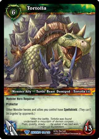 다른 반신들처럼 고대의 전쟁 당시 참전해서 활약했다. 악마 수백마리를 짓밟고 물어죽였는데, 거북답게 너무 느렸기 때문에 수많은 악마들에게 둘러싸이자 어쩔 수 없이 껍질로 숨어서 전쟁이 끝날때까지 안나왔다고 한다. 근데 이게 의외로 시간을 버는 효과가 있었고,이쯤되면 불타는 군단이 정말 허당군단이라도 해도 과언이 아니다. 덕분에 나이트 엘프 군단은 재정비를 하고 토르톨라의 방어선(?)까지 돌아와서 악마들을 모두 물리쳤다. 그후 전쟁이 끝나고 악마들의 시체에 둘러싸인 채 발견된 토르톨라는 시체들을 모두 걷어내자 고개를 내밀고는 "우리가 이겼는가?" 라고 물어봤다는 전설이 있다.