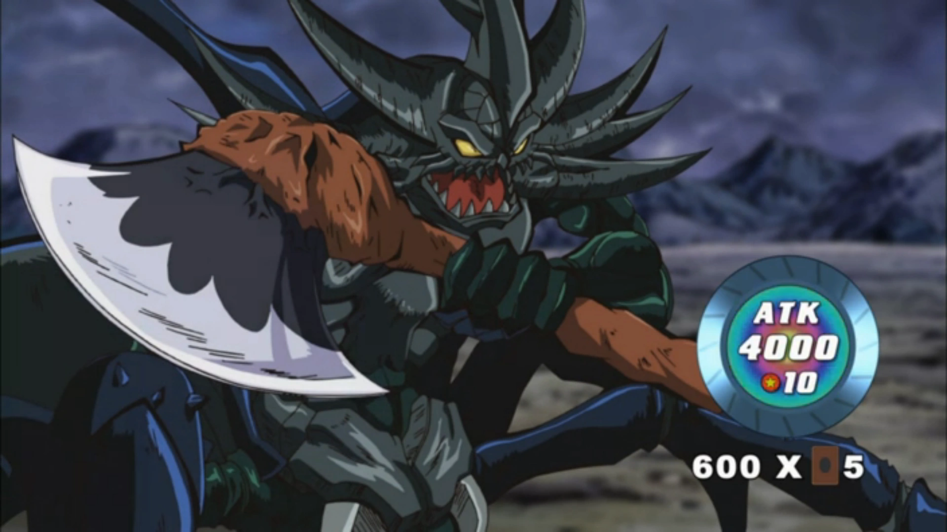 4. 솔저에게 데몬의 도끼를 장착하고 공격력이 0이 된 스트롱홀드를 공격. 앤틱 기어 공통의 지속 효과인 공격시 마함 봉인에 의해서 미러 포스의 발동이 봉인되며, 그대로 2300의 전투 대미지가 들어가 승리한다.