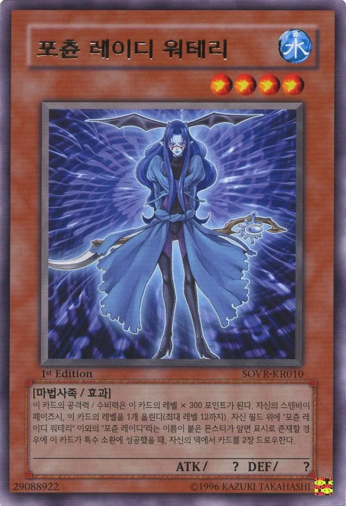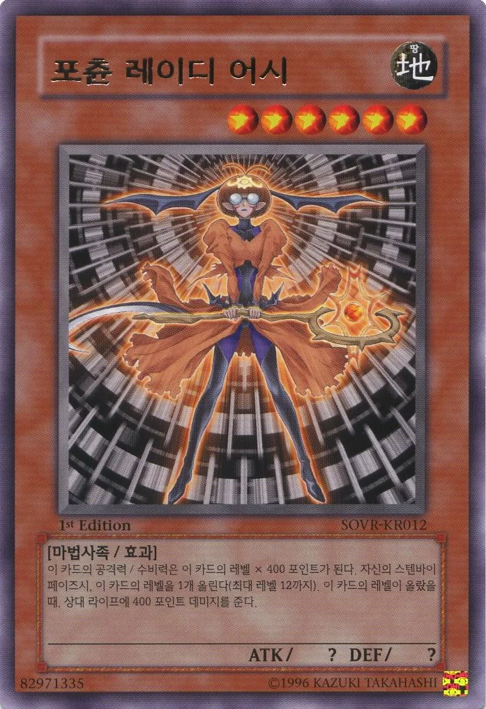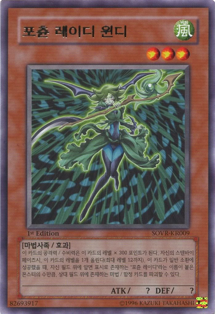 이 카드의 공격력 , 수비력은, 이 카드의 레벨 X 300 포인트가 된다. 이 카드가 일반, 반전, 특수소환 되었을때 자신 필드위에 포츈 레이디의 수 만큼 자신의 덱에서 카드를 드로우 한다.