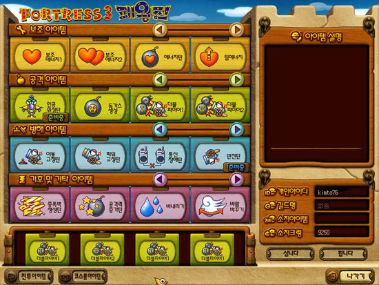 포트리스3 패왕전만의 신선한 소재로 원하는 모자나 안경, 고글을 사서 자기만의 탱크를 꾸밀 수가 있다. 캐시가 아닌 오직 크링만 있으면 원하는 아이템 전부 다 구입할 수가 있으며 진정한 대인배 게임 파워나 각을 올려주는 톱니바퀴나 나사같은 부속 아이템들도 존재했었다.