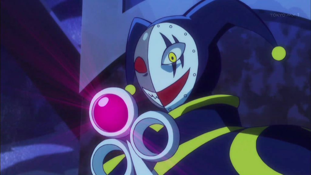 벌룬 껌으로 폭발하는 비행선에서 탈출한 스페이드와 퀸이 오자 "다우트 녀석.. 실패했는가.."라며 목숨까지 버리며 자신에게 충성을 맹세한 다우트를 질타한다. 조커와 스페이드 퀸이 실버하트의 기술인 앰블렘 파이어를 시전하며 세장을 동시에 던졌으나 로즈의 힘을 흡수한 지팡이의 능력으로 카드의 궤도를 바꾸어 천장을 날려버리고 가볍게 회피.뒤에서 자신을 치려는 퀸을 썬더 블래스트와 의수로 가볍게 막고 지팡이로 움직임을 멈춘다. 이어서 공격하려는 스페이드 역시 간단하게 움직임을 막아버리고 로즈를 구하려는 하치도 멈추게 해버린 후 움직이지 못하는 셋을 썬더 블래스트로 제압한다.그냥 몽땅 멈추게 한다음 도망치면 되지 않나?