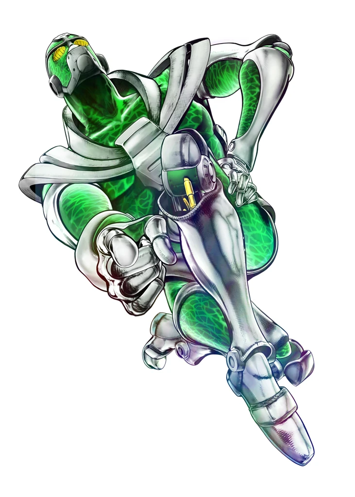 외형은 인간형 스탠드로써, 에메랄드빛 몸체에 핏줄이 그물처럼 얽혀 있는 듯한 모습을 하고 있다.