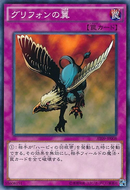 해피의 깃털과는 반대로 자신의 필드의 마함을 파괴하는 그리폰의 깃털이라는 카드도 존재한다. 해피의 깃털이 동봉 카드였기 때문에 한국에서는 그리폰의 날개가 먼저 나오고 5년 넘게 지나서야 해피의 깃털이 나왔다.