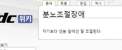 - ↑ 괜히 개폼 잡으면서 건들거리는 찌질이를 까기 위해 썼으며, 분노조절장애 자체와는 크게 관련 없다. 실제 분노조절장애는 상대와는 상관없이 감정을 조절하기 힘든 병이다.