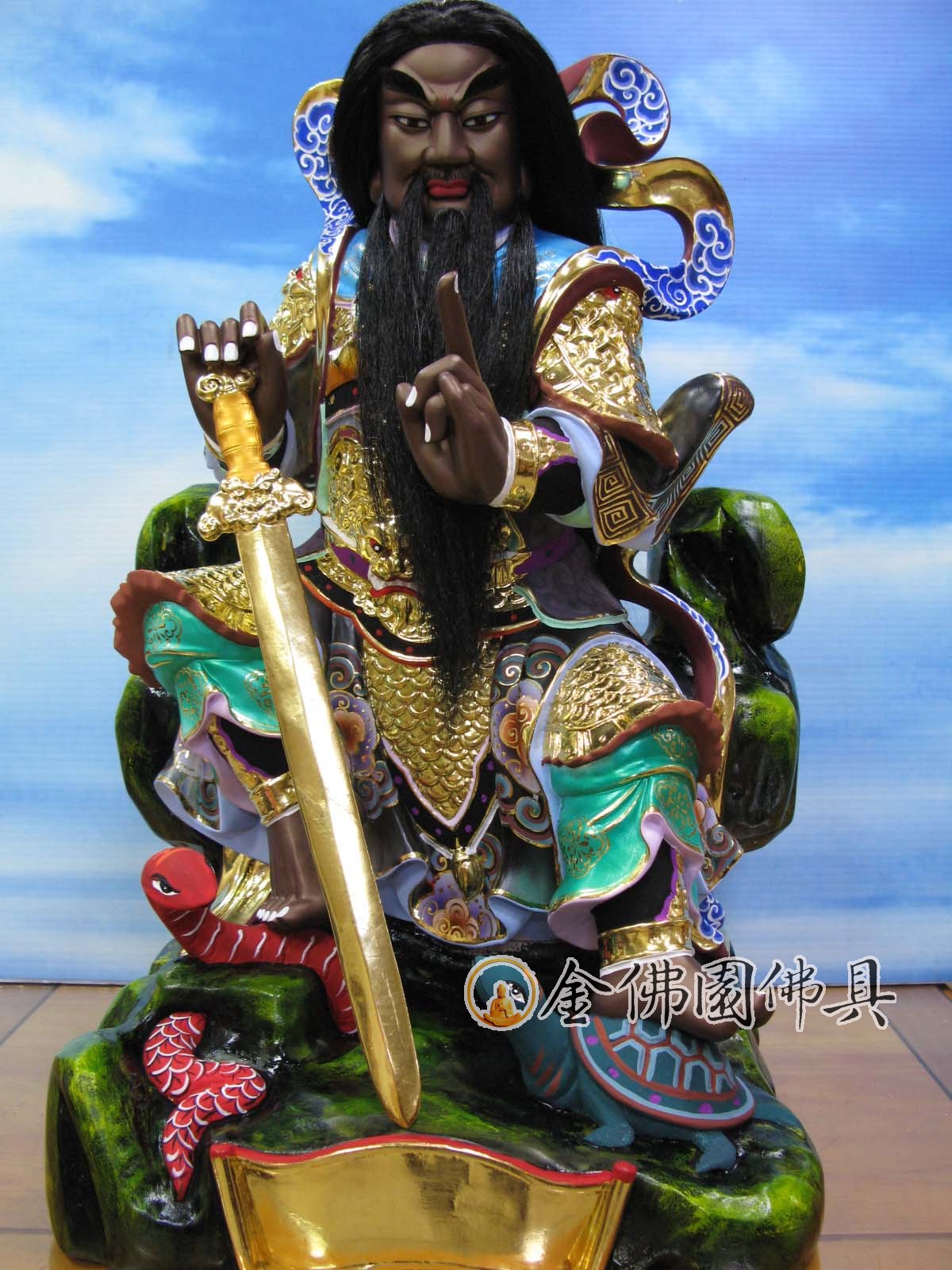 현대 만들어진 현천상제 신상.(출처) 전통적으로 현천상제는 오행 중 북방을 상징하는 검은색을 많이 쓰고 무섭게 표현된다.