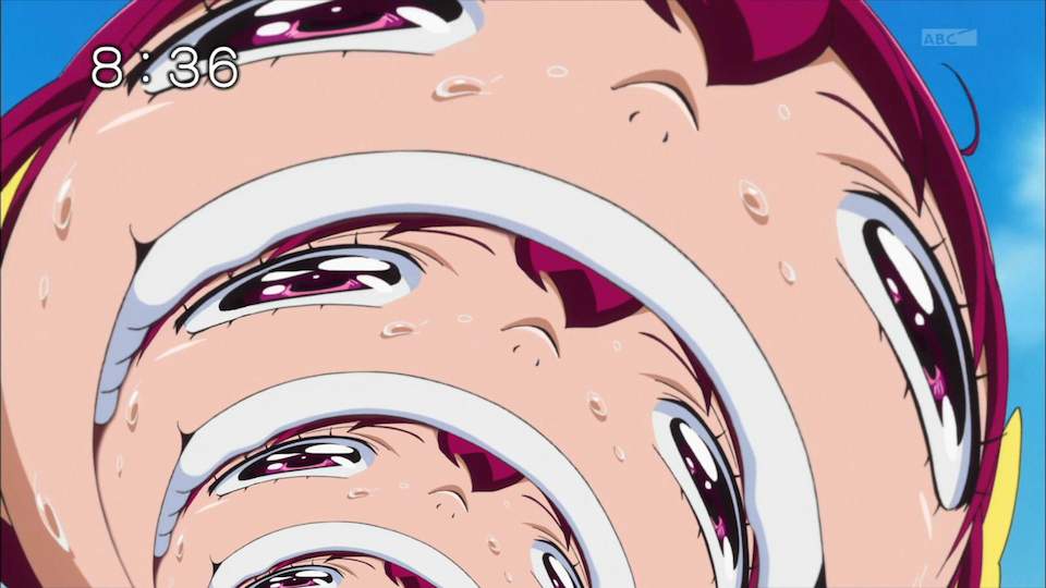 스마일 프리큐어 13화에서 제비뽑기에서 대흉을 뽑은 직후, 너무나도 충격적인 얼굴개그를 보여줬다. 이때 팬들은 완전 놀라 자빠졌다.