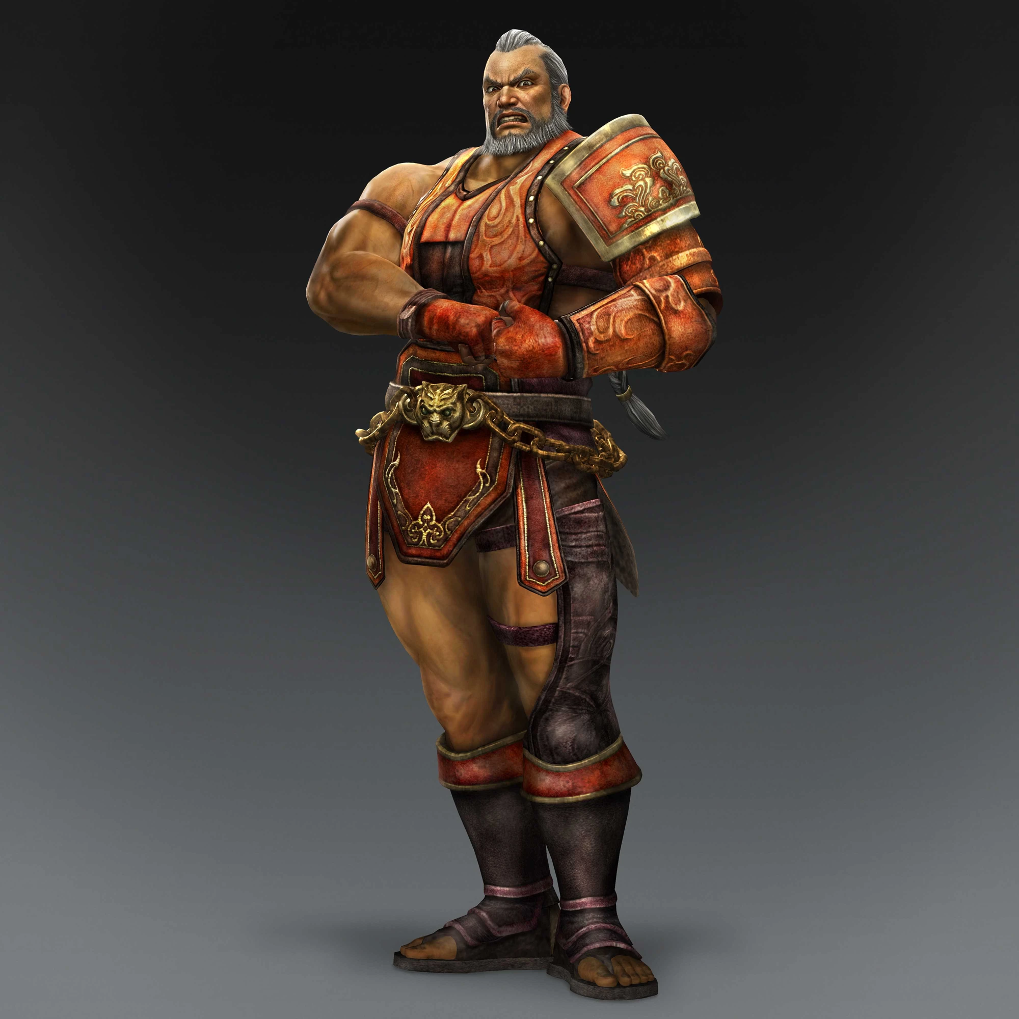 웃통을 벗고 근육을 적극적으로 노출(...)하면서 캐릭터가 훨씬 마초적으로 변했다. 무쌍난무 두개가 전부 잡기라는 특징이 있다. 무쌍난무 1은 상대를 잡고 높이 점프한 뒤 고각도 백드롭(...)으로 작살을 내고[9] 무쌍난무 2는 냅다 던진 뒤에 근육버스터로 상대를 묵사발 낸다. 그야말로 남자의 로망이다. 근육 버스터로 상대를 잡았을 때 효과음으로 병사들이 '장군! 장군! 장군!'이라고 외치는 게 들린다. 다만 잡기가 실패하면 들리지 않는다. 무쌍 오로치 2에서 채택된 무쌍난무는 두번째 무쌍난무인 근육 버스터다. 그 대신 무쌍난무 1은 타입액션으로 변경되면서 남아있다. 그리고 이걸 여캐들에게 시전하면...6버전 7버전이것이 테크모와 하나가 된 코에이의 위엄!!업그레이드 버전(..)