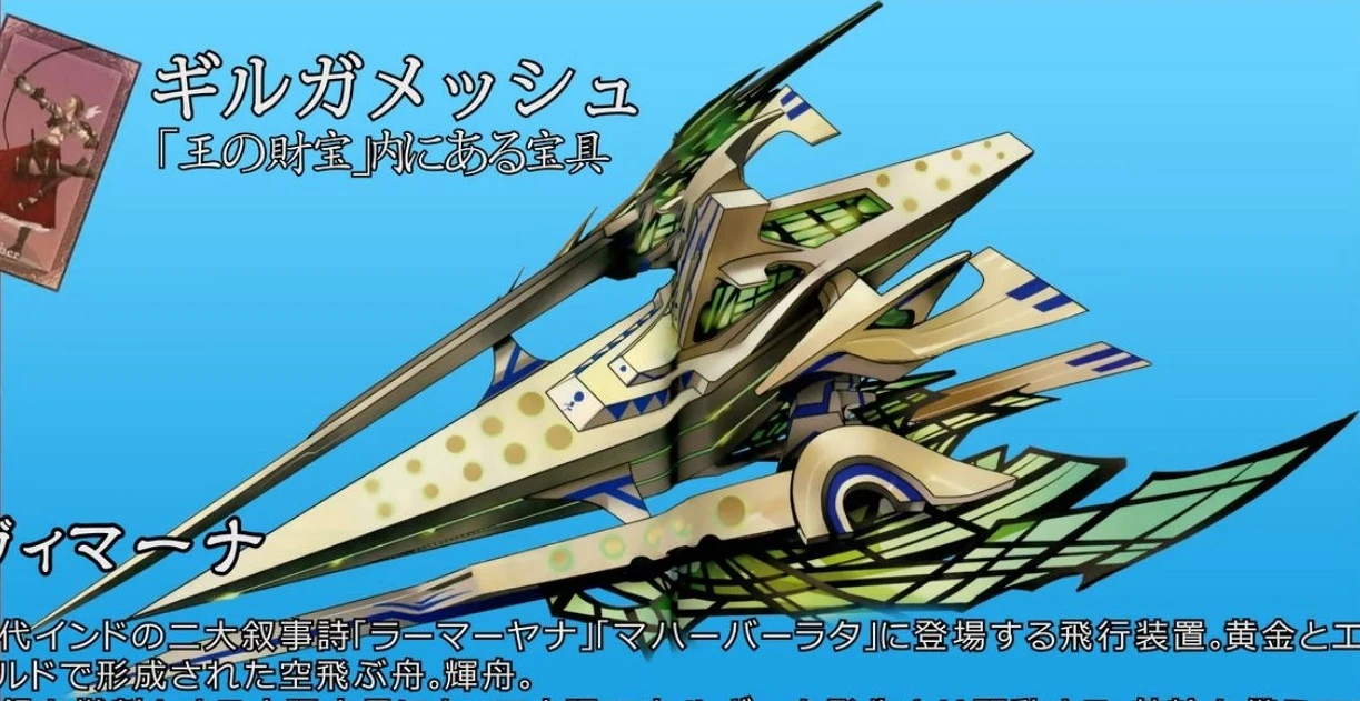 3. 덧붙여 길가메쉬의 창고에는 비마나 뿐 아니라 고대 인도의 초과학병기(ex : 고대 핵폭탄)를 전부 가지고 있다고 언급된다.
