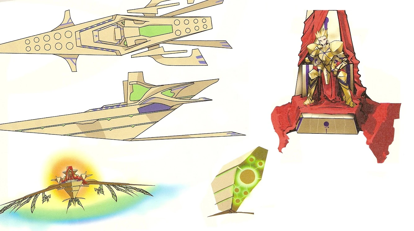 Fate/Zero에서 모든 신화에 등장하는 재보의 원형을 소유했다는 길가메쉬가 소유한 보구 중 하나. 분류는 비공보구(飛空宝具)이며, 정식 약칭은 황금범선.[2]