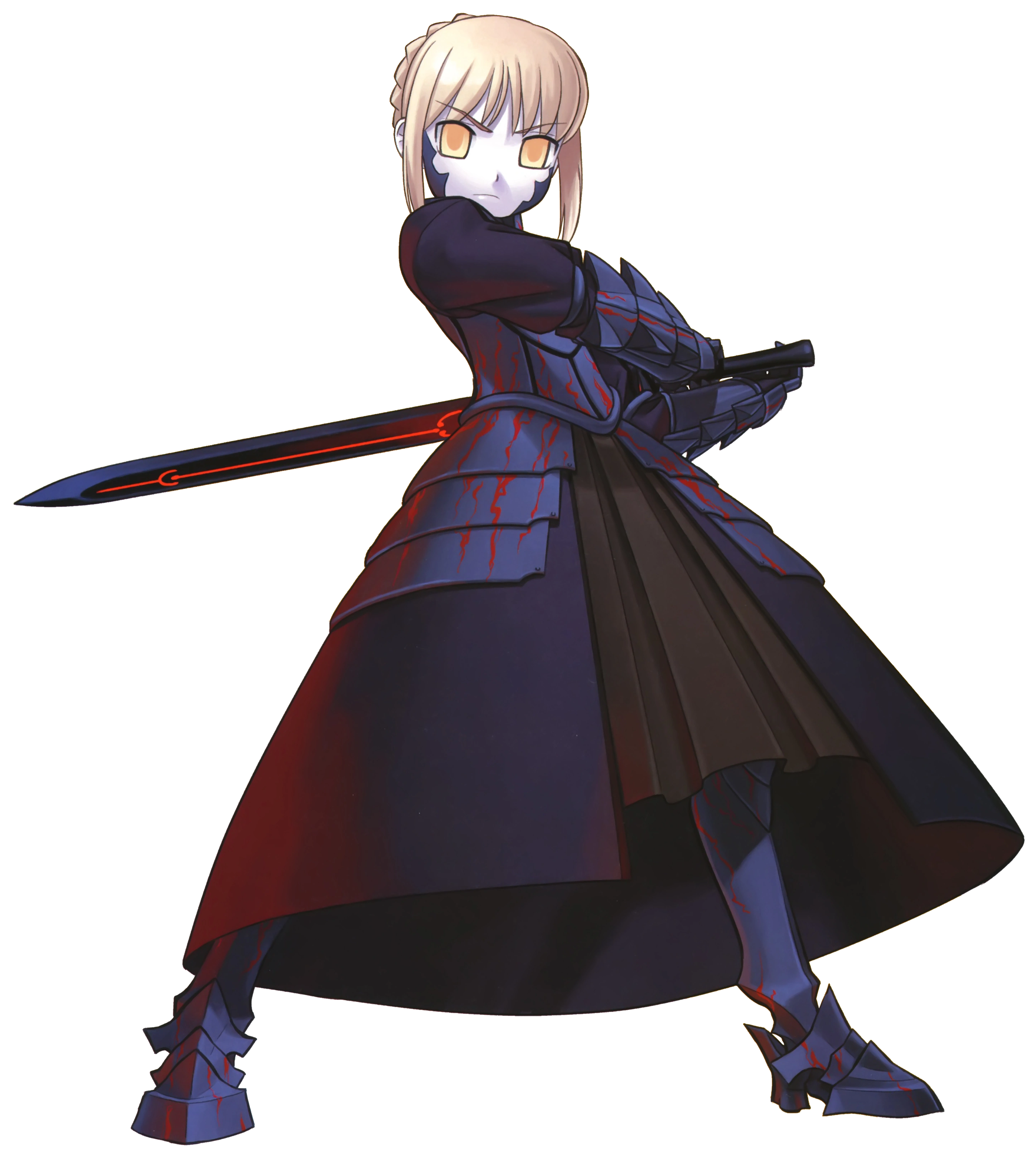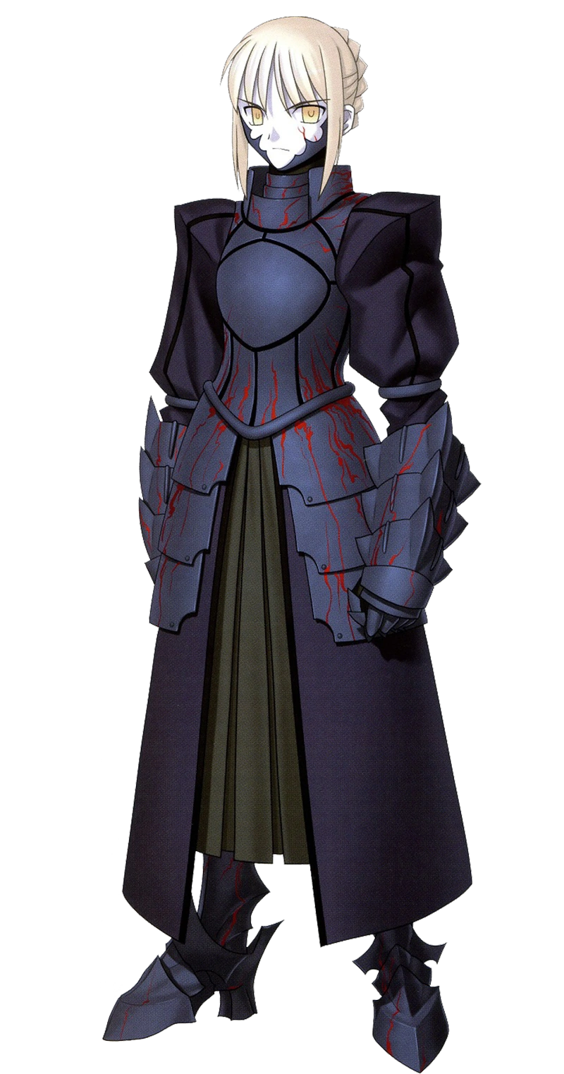 3. 4차 버서커와는 색깔만 비슷할 뿐 갑옷 구조가 완전히 다르고 하나도 안 비슷하다. 흑화 세이버는 기존 세이버의 드레스+갑옷 디자인을 어느정도 이어받아 흉갑+건틀렛+각반이 주된 갑옷이다. 반면 4차 버서커는 전신을 감싼 플레이트 아머이다. 게다가 애초에 흑화 세이버는 드러난 갑옷의 비중이 적고 드레스 부분이 더 많은 반면 버서커는 완전한 갑옷으로 중무장했다.