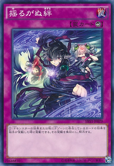 | ①: 펜듈럼 몬스터의 효과 또는 이미 펜듈럼 존에 존재하고 있는 카드의 효과를 상대가 발동했을 때에 발동할 수 있다. 그 발동을 무효로 하고, 제외한다. | ||||