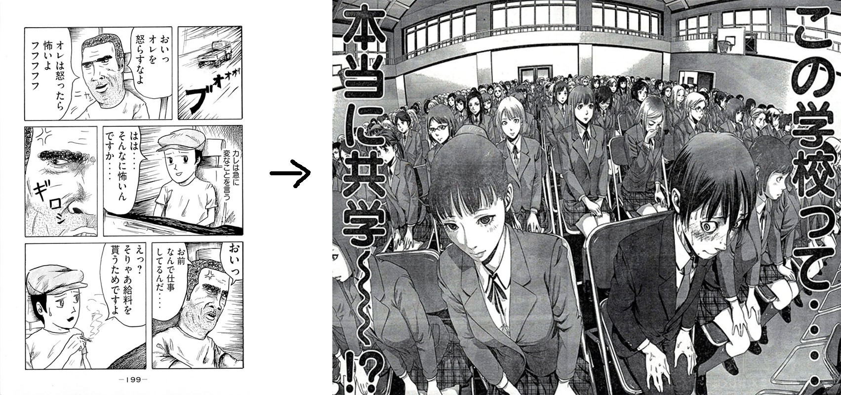 (왼쪽 이미지 : 턱없는 겐과 내 이야기 / 오른쪽 이미지 : 감옥학원)