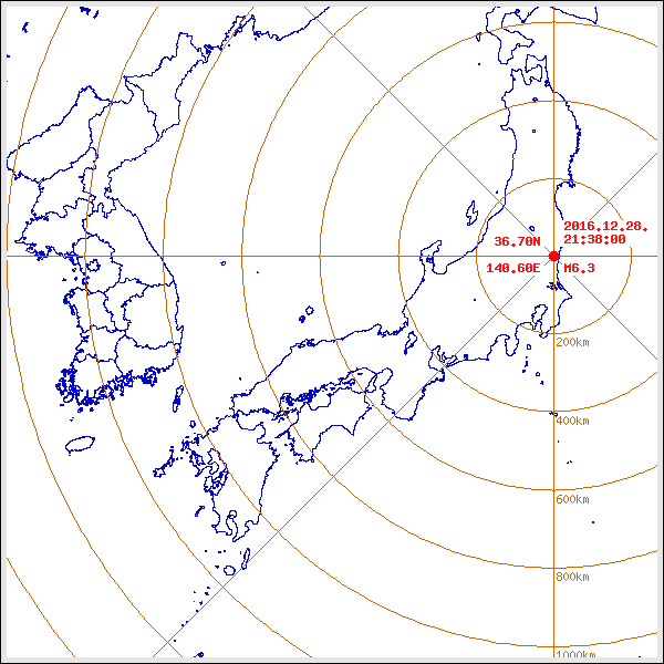 2016년 12월 28일 21시 38분경, 이바라키 현에서 규모 6.3의 지진이 발생하였다.