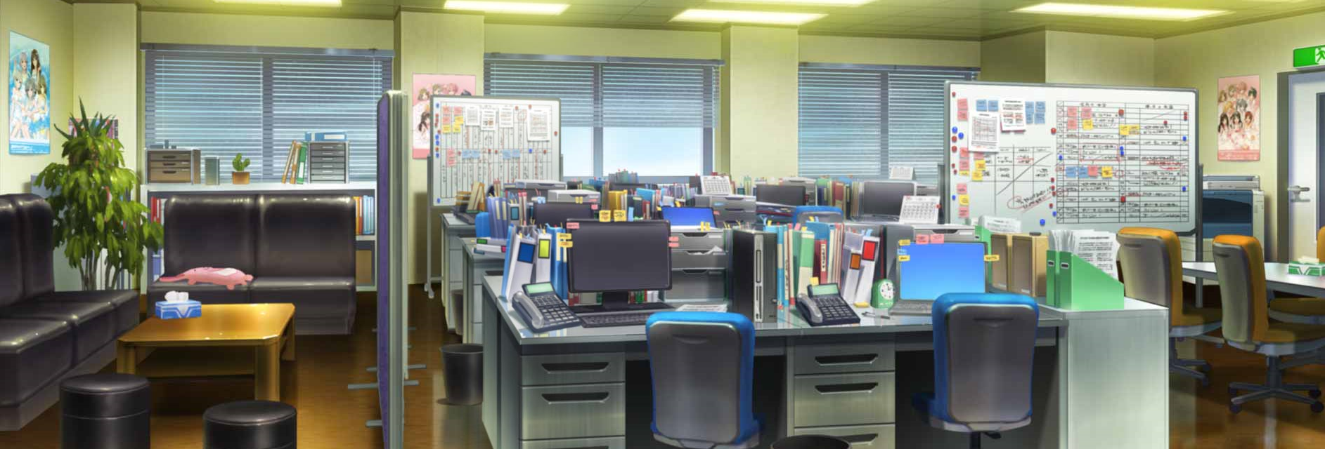 - 가장 뒤에 있는 프로듀서와 프로듀서 앞 줄의 이마니시 부장을 포함해 약 20명 정도의 프로젝트 담당자가 있는 것으로 보이며 치히로같은 일반 직원을 포함하면 좀 더 많은 직원이 소속되어 있을 것으로 추정된다.