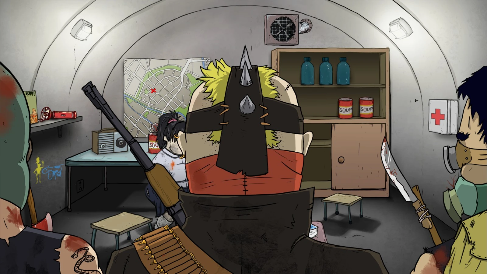 방공호 안에선 2D 어드벤쳐 장르로 진행되며 하루마다 병맛넘치는 일기장을 보며가족의 상태를 파악하여 식량과 물을 배분하고 다치거나 병에 걸리면 구급약으로 처치를 하는 등 관리를 해야한다. 주기적으로 누군가 지상으로 나가 아이템을 수집 할 수 있다.가끔씩 발생하는 강도의 공격, 낯선 이의 접근, 방사능 바퀴벌레의 출현과 같은 여러 상황에 여러 아이템을 가지고 적절하게 대응하거나 행동을 결정해야 하며 가끔씩 오는 상인을 대상으로 물물 교환을 할 수 있다.