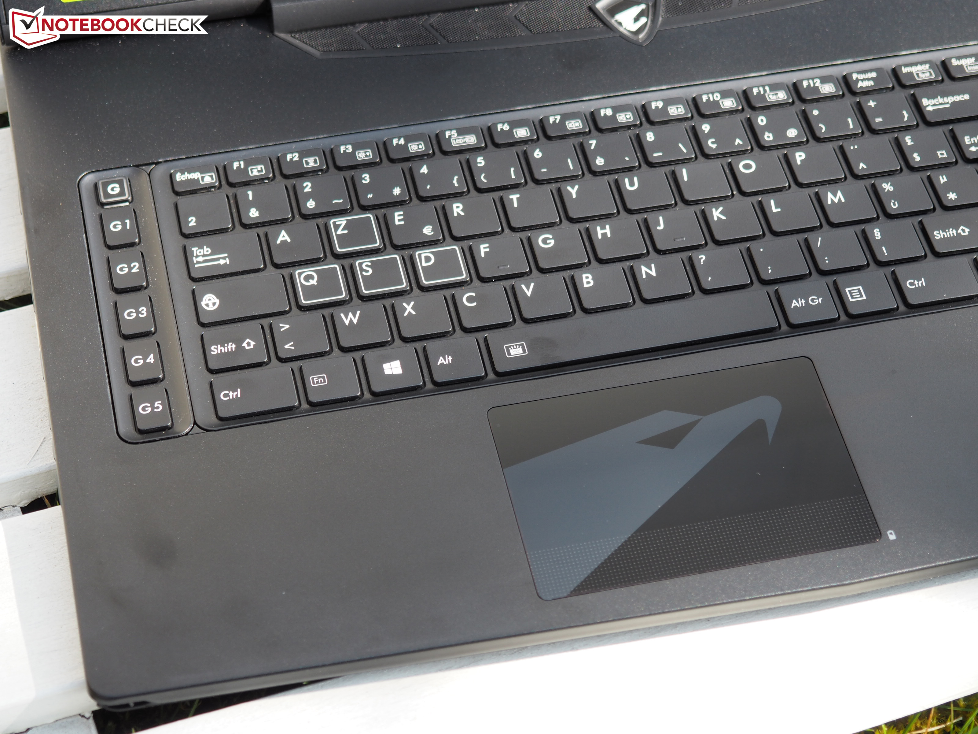 AORUS 는 일반적인 노트북과 달리 기존의 키보드 외에도 좌측에 5개의 메크로 버튼을 지원하고 있다.이 메크로 메모리를 총 5세트를 지원을 해주는데 이걸 모두 합하면 총 25 개의 다양한 메크로 버튼을 지원해준다. 이 메크로 조정은 윈도우에 미리 설치된 소프트웨어로 다양하게 컨트롤이 가능하다. 하드웨어 매크로이기 때문에 게임가드 등 매크로 차단 프로그램의 마수에서도 안전하다는 점은 덤. 물론 메크로 뿐 만이 아니라 윈도우키 사용 금지, 팬 속도 조절 등 다양한 것들을 프로그램으로 조절이 가능하다.