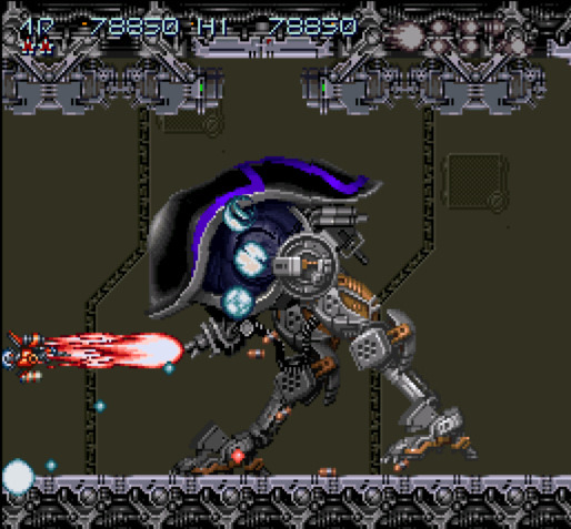 - ↑ 마지막에는 플레이어 기체를 스캔하더니 플레이어의 복제기체 환상(?)을 뿌린다. 이놈들은 플레이어가 버튼을 누르는것과 동시에 동일한 무장을 적탄으로 발사하므로 돌진을 회피하면서 타이밍 잡아가면서 무기를 써야한다. 클리어 BGM이 나왔다고 방심하지 말 것. 핵이 탄을 흩뿌리며 계속 달아난다. 이 녀석까지 잡아야 엔딩. 참고로 배경이 빨리 지나가 정신없기도 하고 보스가 발사하는 탄도 배경에 묻혀 보호색을 띄고 있어서 은근히 짜증날 수 있다. 난이도가 상승하면 뿌려대는 탄수도 증가한다.