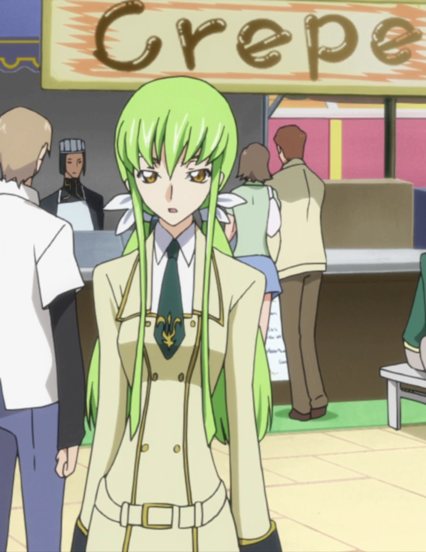 총탄이 머리를 뚫고 심장을 관통하거나 전기톱에 썰려도 죽지 않는(고통은 느끼지만) 불로불사의 몸을 갖고 있다. 몇몇 과거를 비추는 장면을 통해 추정 나이 500세, 또는 그 이상일 수도 있는 정체가 불명인 나이스 바디 츤데레 누님 캐릭터. 기아스의 부여자니 당연히 그녀에게는 기아스가 통하지 않는다.