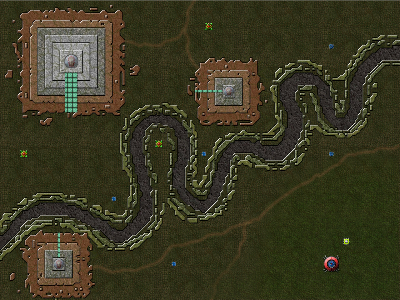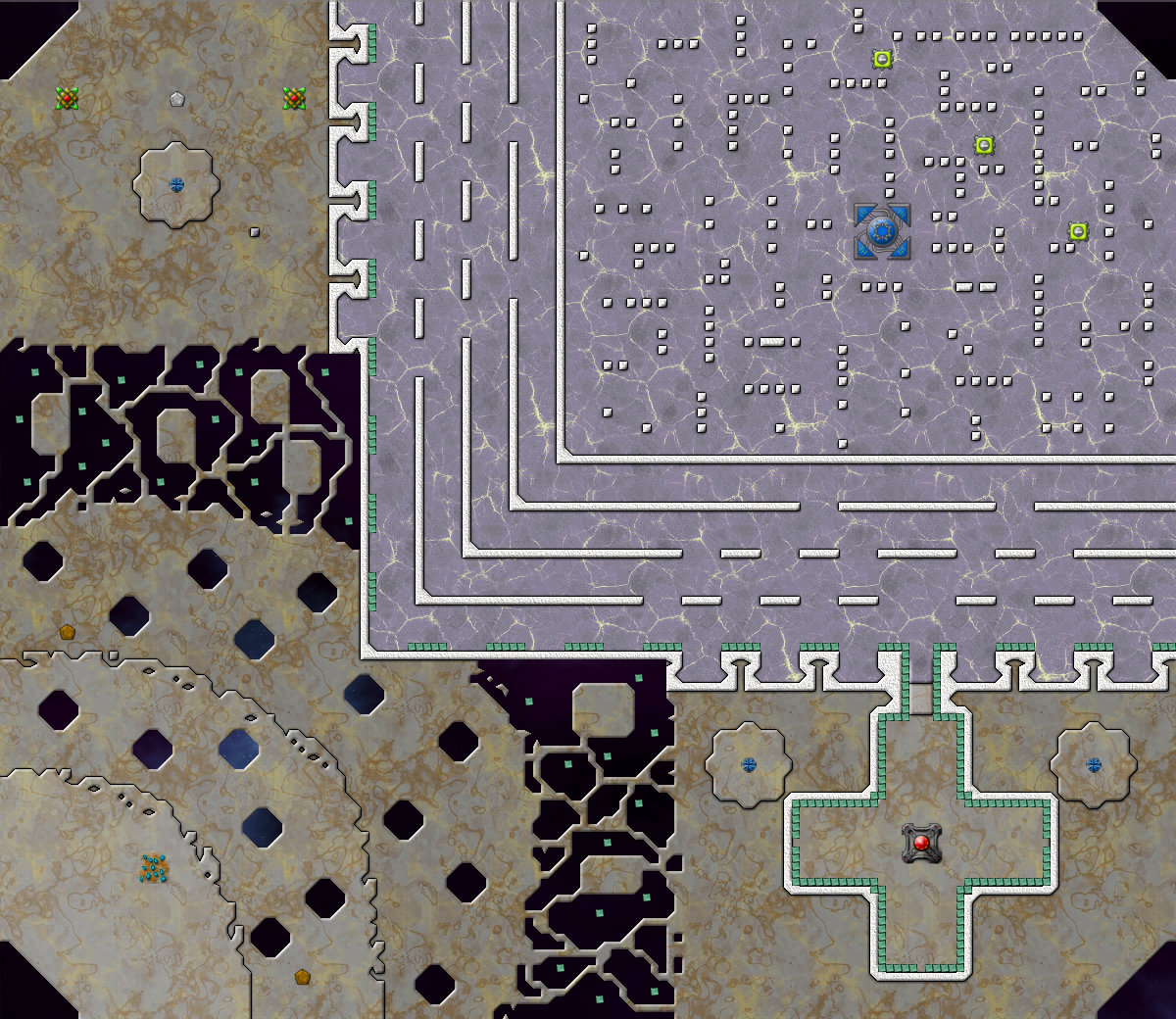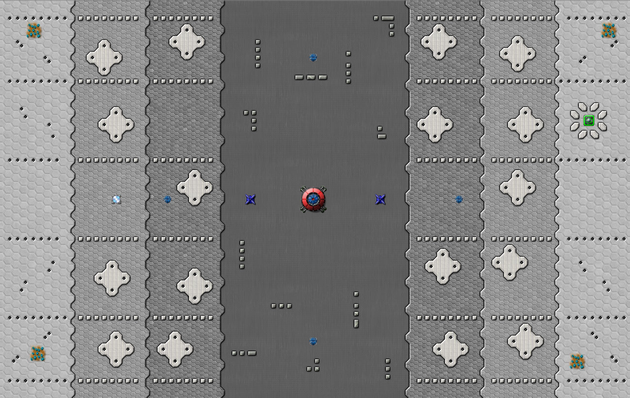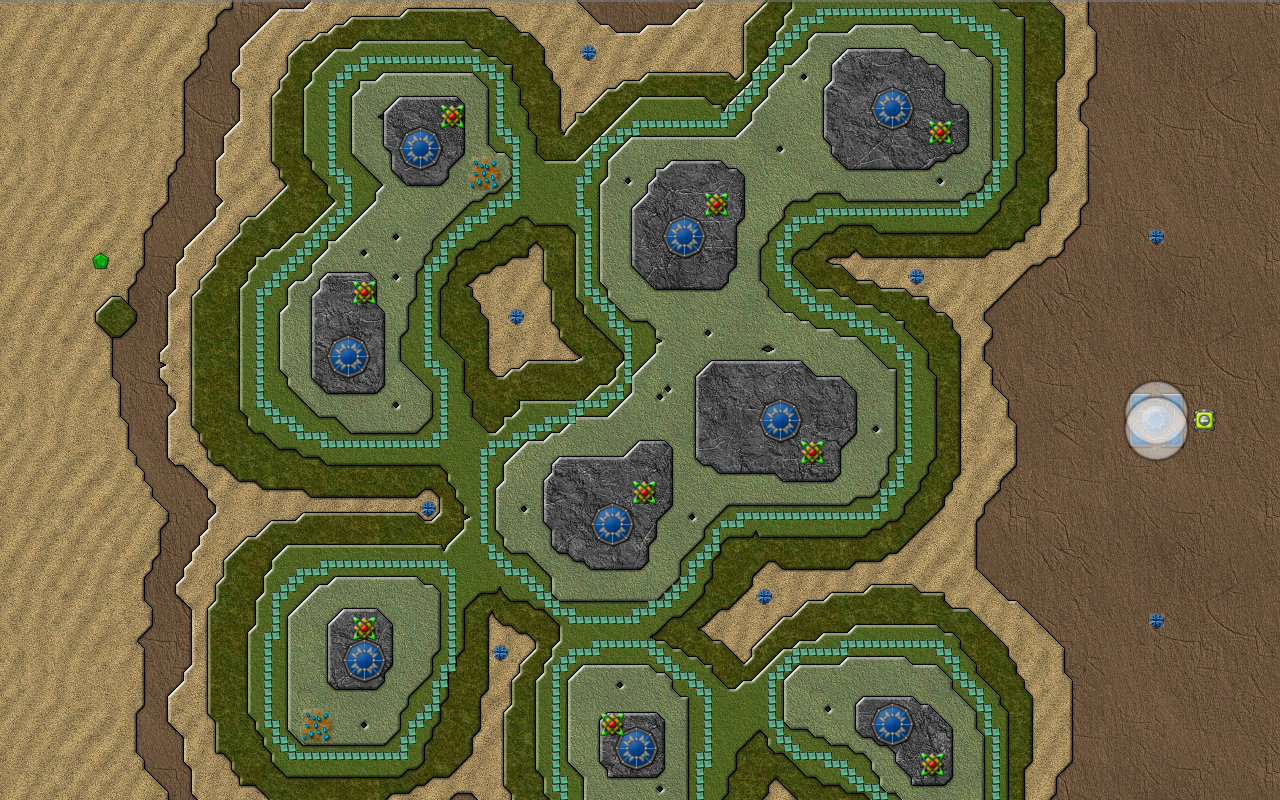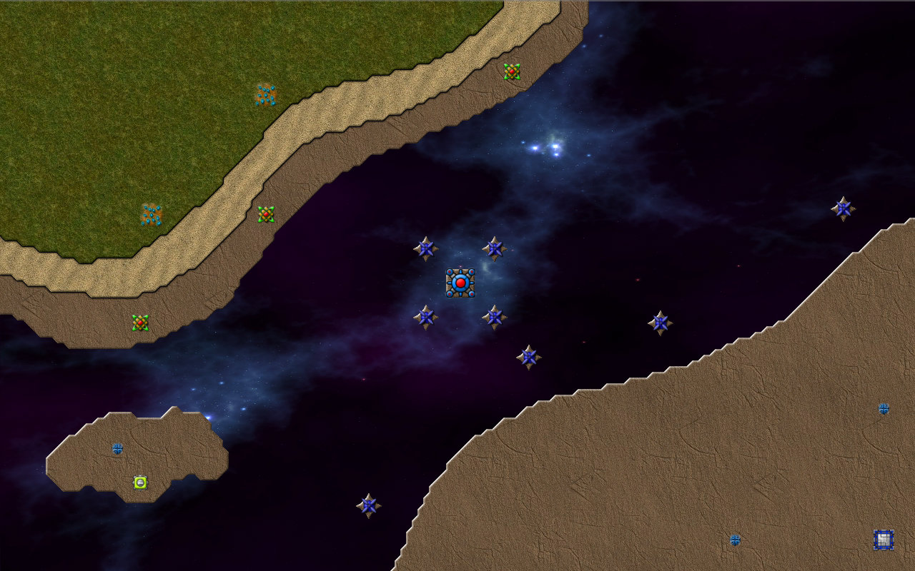 이 맵에서 Shield(보호막)을 얻을 수 있다. 중앙에 커맨드를 착륙시키길 권장한다. 그리고 왠 이상한 초록색 타일들이 보일텐데, 벽이다. 정확히는 스펀지. 크립을 흡수하다가 용량이 다 되면 알아서 터진다.