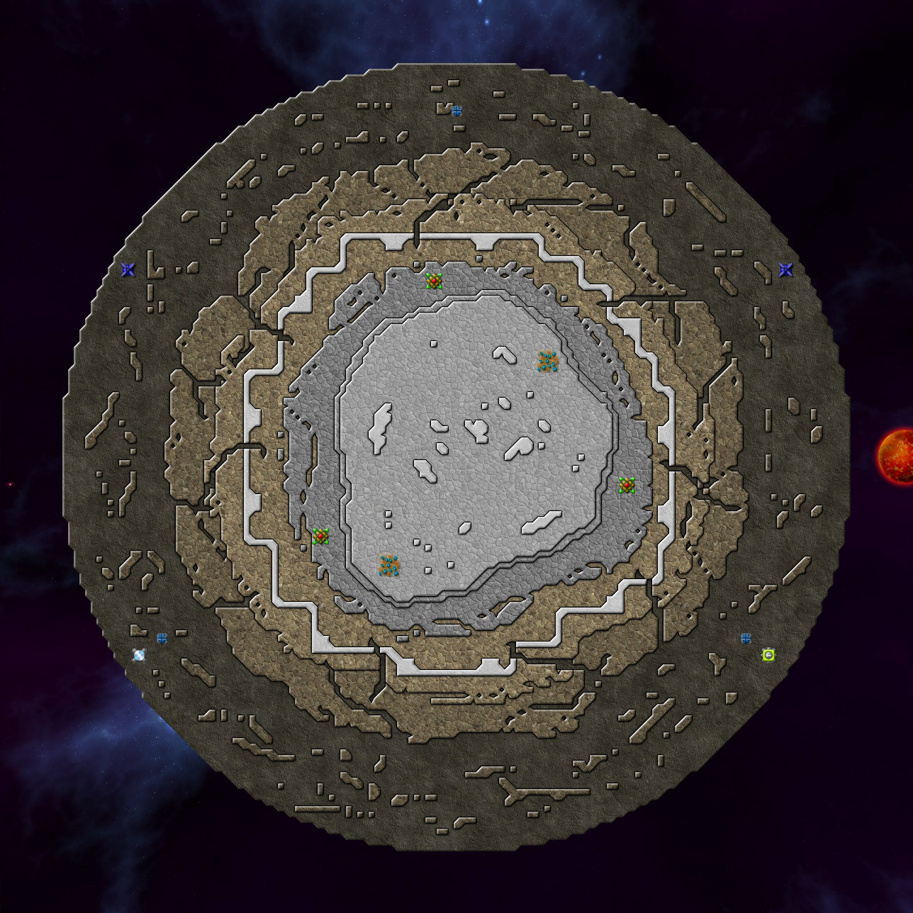 맵 정 중앙에 커맨드를 착륙시키길 권장한다. 이 맵에는 특이하게 중력을 생성하는 중성자별이 돌아 다니고 있는데[11], 크립들이 중성자별 쪽으로 몰린다. 반대쪽에 있는 크립도 말이다.