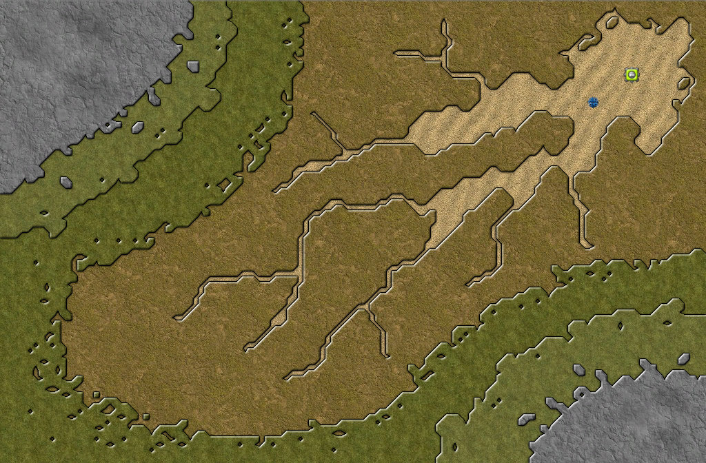 주로 상단의 중간에서 약간 좌측에서 시작한다. 초반부터 크리퍼가 몰려들어올 수 밖에 없는 형태고, 컬렉터를 생성해서 빠르게 확장을 하기 어려운 구조이나 보이는 3개의 언덕 위에 있는 물체의 도움을 받을 수 있다. 에너지를 꾸준히 공급해주면 AC를 말 그대로 홍수처럼 뿌려주고 대형 실드역할을 해주기때문에 초반에 어느정도 cannon과 motal 로 버티면서 왼쪽의 언덕을 통해서 AC필드를 한두번 뿌려서 어느정도 장악 가능한 영역을 넓힌 다음 소수의 reactor를 건설하여 부족한 에너지를 충당하면서 중앙을 점령하여 추가적인 AC를 지원받으면 된다.