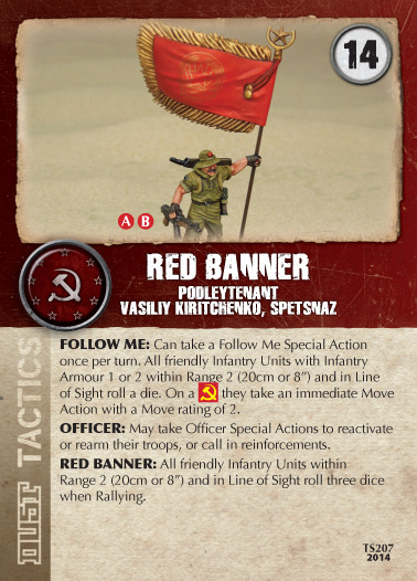 나를 따르라!!! 같은 장갑 보병 유닛들에게 버프를 걸어주는 깃발 부대장. 존재 자체만으로 계속 버프를 걸어주기 때문에 상대방의 어그로를 끌기 충분하다.
