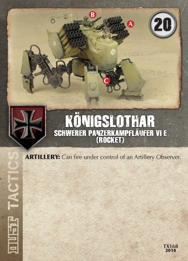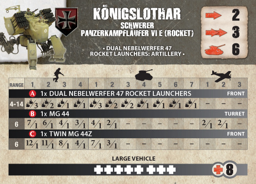 쾨니히스 시리즈 중에서 포격형인데 의외로 잉여이다. 공격력이 사실상 로타와 같으며 크기 때문에 숨기도 힘들다. 다만 무전기 장착 분대를 잘 활용하는게 좋을 수 있다.