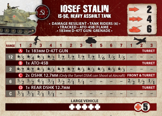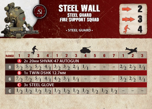 매우 비싼 값에 걸맞게 공격력, 장갑, 체력 모든게 우수하다. 특히다 뒤에서 지휘관 분대가 수리 스킬로 계속해서 버틴다면 정면승부는 도저히 불가능 할 지경에 이르게 된다.